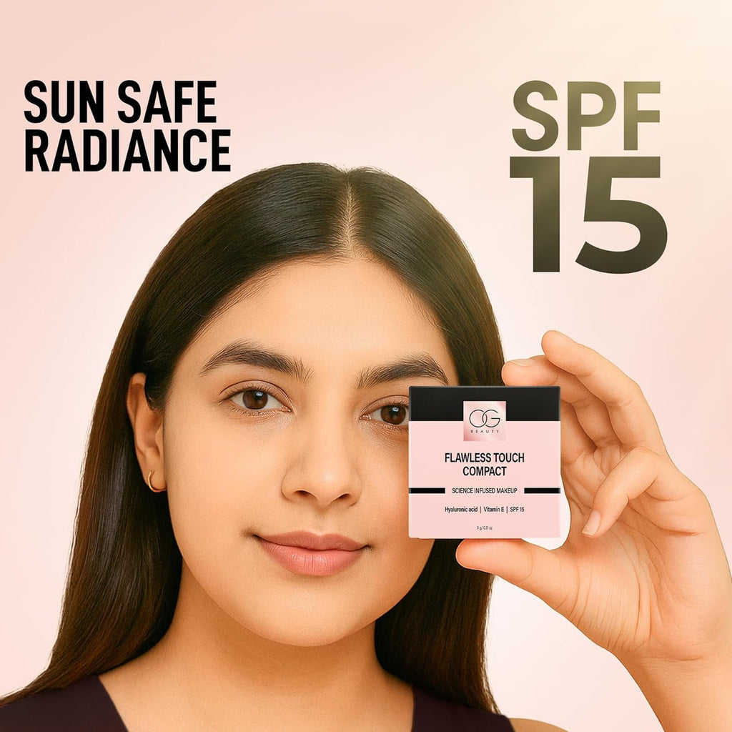 Achieve a flawless, natural look with the OG Beauty Flawless Touch Compact Powder in the elegant Brew shade. This compact is infused with Hyaluronic Acid and Vitamin E, giving your skin a smooth, radiant finish while keeping it nourished. Its lightweight, long-lasting formula blends seamlessly, offering even coverage and shine control throughout the day. Designed with a built-in mirror and soft sponge applicator, it ensures quick and easy touch-ups anywhere, anytime. Perfect for daily wear and special occasions, this compact enhances your makeup routine with a matte yet natural finish.