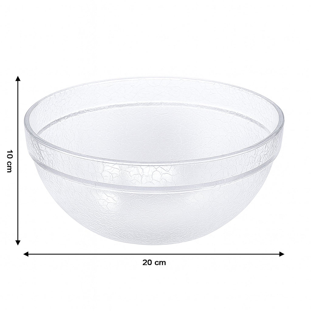Prepare and serve with ease using this premium transparent textured Idli Bowl, specially designed for multipurpose kitchen use. Its deep, wide design allows effortless mixing of idli or dosa batter, salads, or desserts while preventing spills during stirring. The crystal-clear body with a frosted crackle texture adds a refined touch to your kitchen and dining setup. Made from sturdy, food-safe plastic, this bowl is lightweight yet durable, making it ideal for both daily cooking prep and table serving. Whether you’re mixing batter, storing leftovers, or serving fresh fruits, this bowl delivers both elegance and practicality.